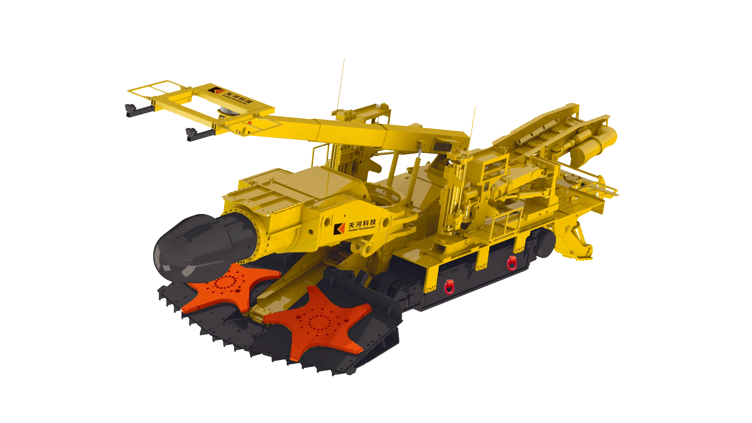 2. 采用单主臂三级升降机构,主臂伸缩行程为 3.8m,可超出炮头 1m 进行支护。