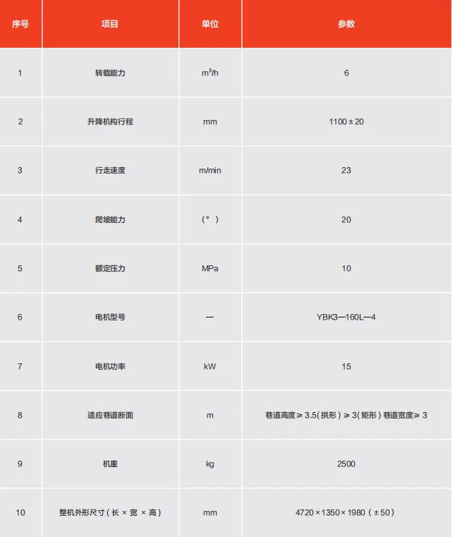 ZYLD6/15LY 矿用履带式转载机采用集料滚筒和上料刮斗的独特设计,能够自动提取矿车里的搅拌料,通过皮带将其输送至混凝土喷射机料斗内,减少了人工和上料时间,降低职工劳动强度,提高生产效率。